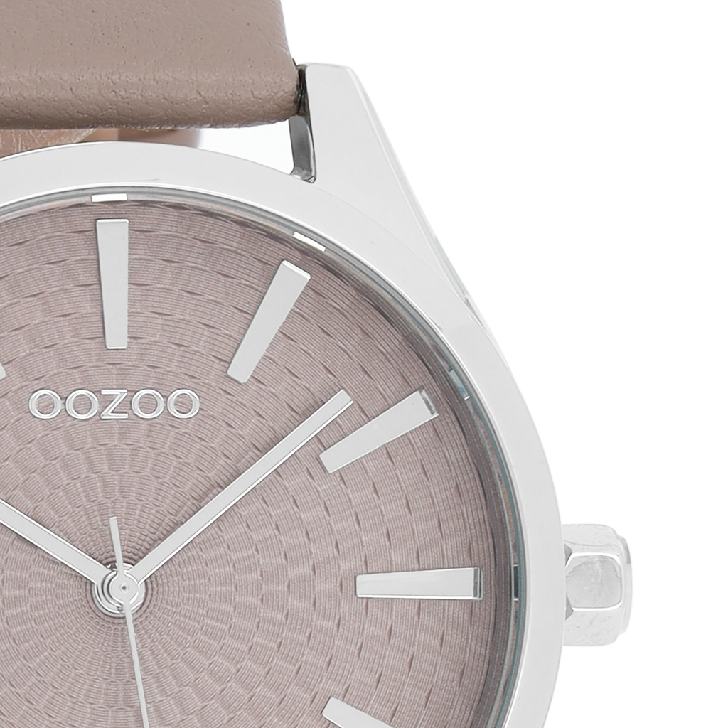 Silver coloured OOZOO watch with taupe leather strap - C9687