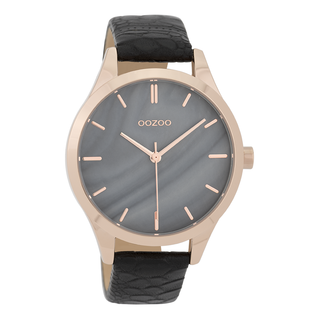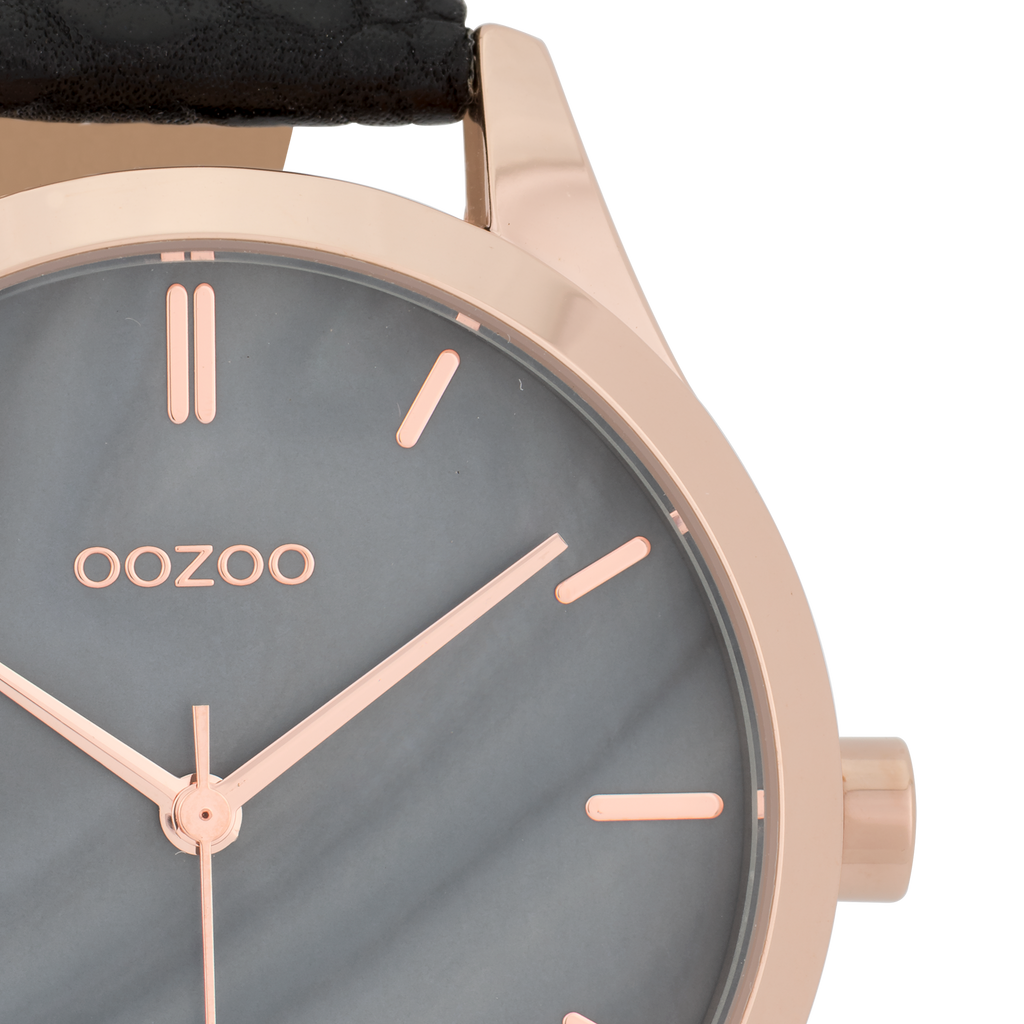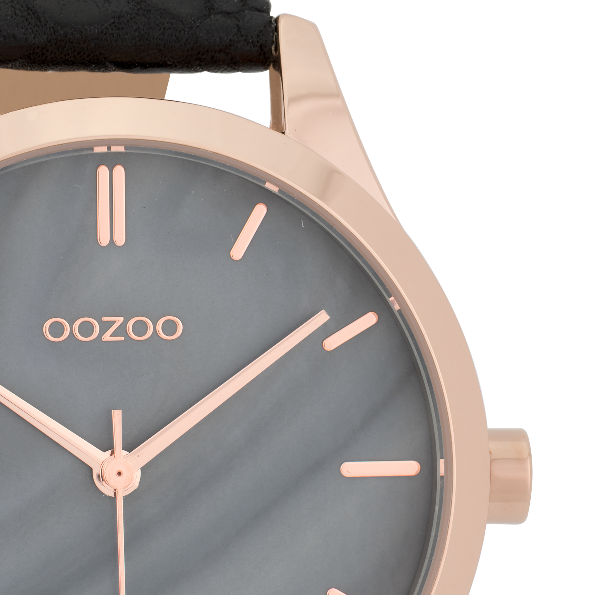 Rose gold coloured OOZOO watch with black leather strap - C9724
