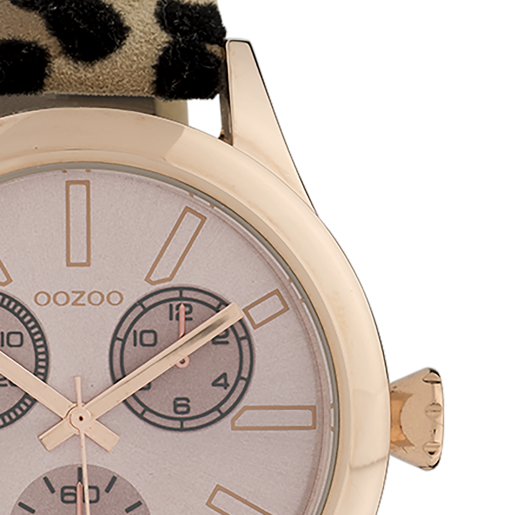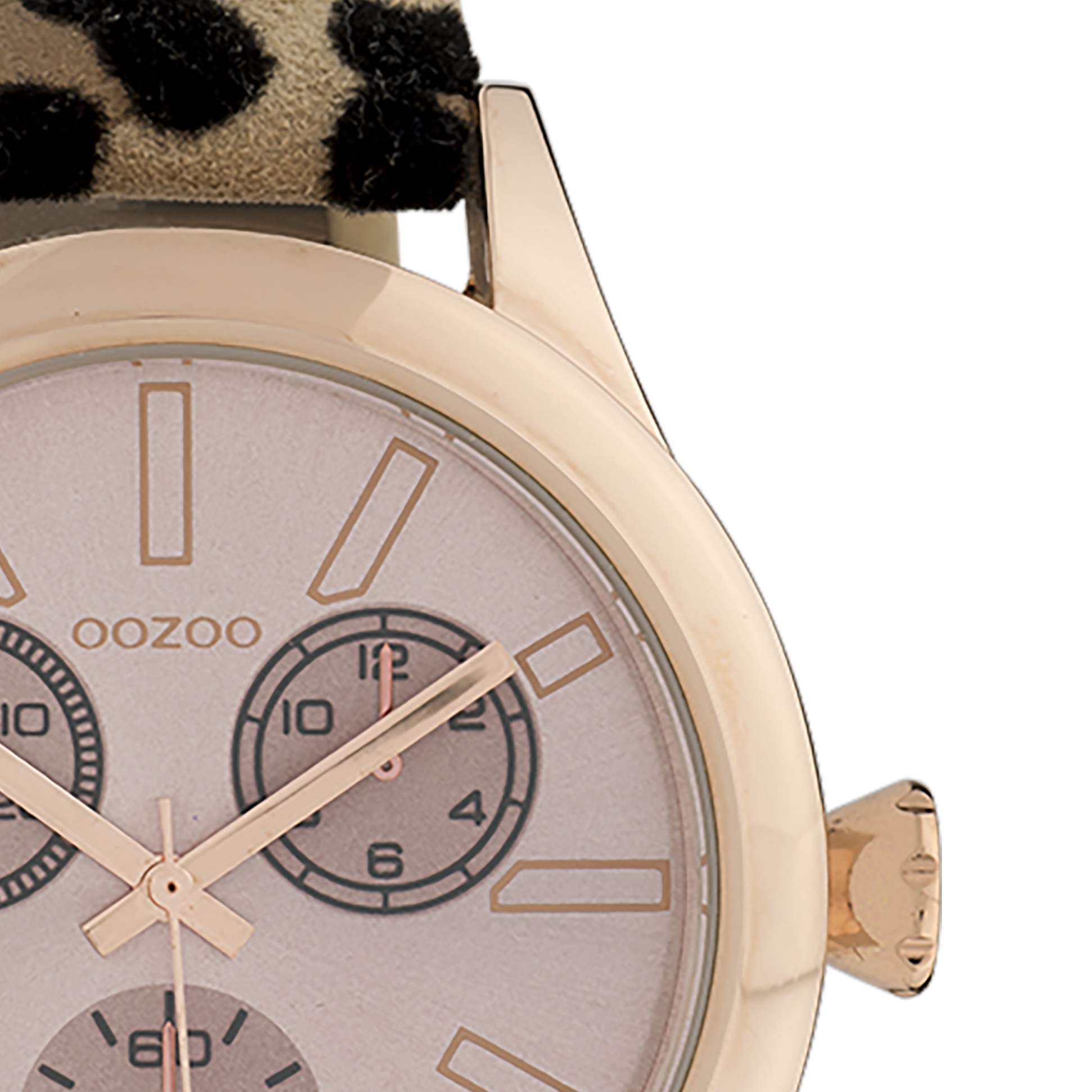 Stand out with this beautiful round ladies design from the trendy OOZOO Timepieces collection. The C9797 has a leopard print multicolor leather strap and 42 mm rose gold coloured metal watch case. You are making quite the fashion statement with this rose gold coloured chrono dial, rose gold coloured stripes digits and matching hands. This essential watch for your wardrobe has a mineral glass, stainless steel backplate and is nickel safe. This watch has a 2 Japanese movement and is covered by a 2 year warranty (see section 3 of our Refund, shipping & warranty policy).
